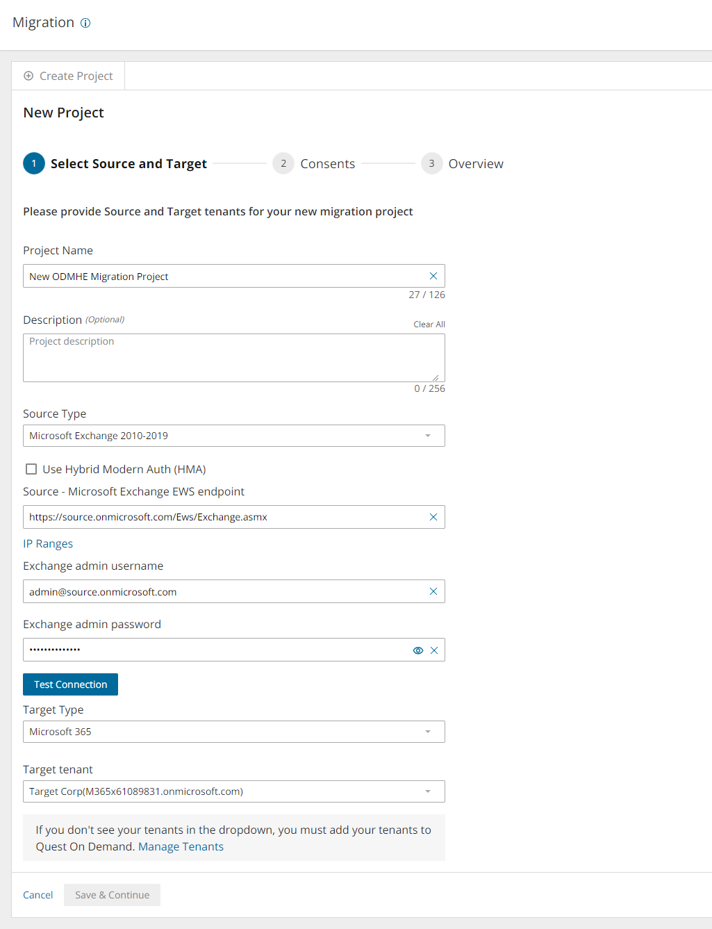- Source tenant - name of the source tenant if the Source Type selected is Microsoft 365.