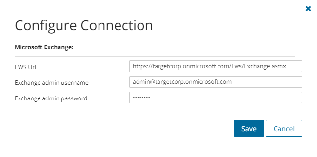 - EWS Url - enter the URL of the Microsoft Exchange EWS endpoint of the source or target Exchange server selected.