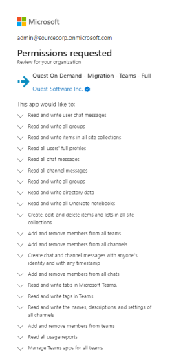Quest On Demand - Migration - Teams - Minimal or Quest On Demand - Migration - Teams - Full consent for the source tenant.