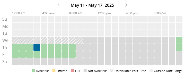 - Striped - Past time and cannot be booked.
