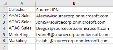 - Prepare a comma-separated values (CSV) file with the source and target group names.