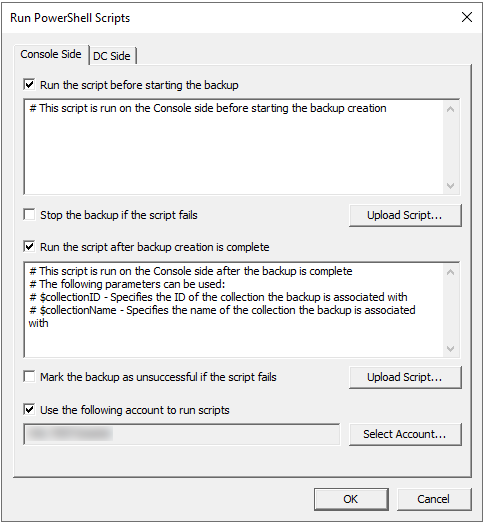 • Run the script after backup creation is complete - Launches specified PowerShell® scripts after backup is created.