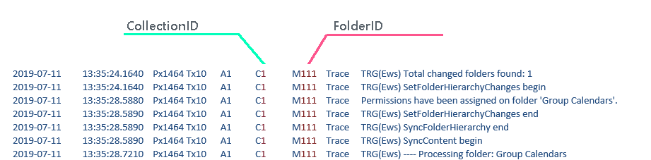 e.g., in the following log entry 2019-01-28 11:50:52.7225 Px1F48 Tx27 A1 C2 M7 Trace ... public folder identifier is "7". |