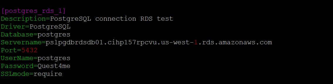 2. Add database connection details in the ODBC files in SharePlex var/odbc directory. See the sample screenshot.