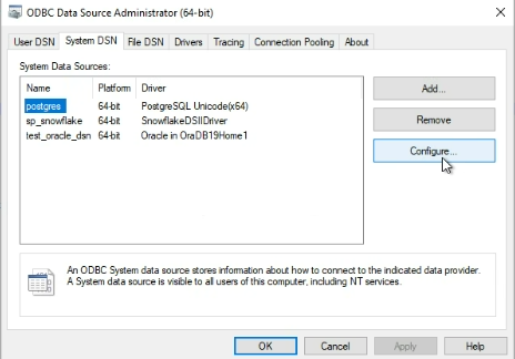 Enter the PostgreSQL DSN name or a connection string that connects to the PostgreSQL database system.