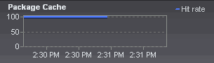 The Package Cache graph contains a single series, Hit rate, which plots the percentage of package cache lookups at the application level that were satisfied by data already residing in the package cache. If this hit rate is high, the cache is performing effectively for the application. A smaller ratio indicates that the application is performing more reads directly from the system catalog than from the package cache and might therefore be contributing to the overall low hit rate for the database.