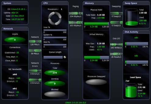 Activity Page | Disk Page | Memory Page | CPU Page | Network Page | Logins Page |