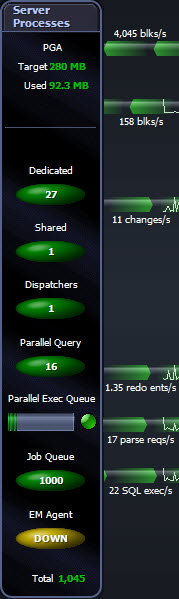 The Server Processes panel indicates the status of Oracle server processes that perform database activities on behalf of end users, and mediate database connections:
