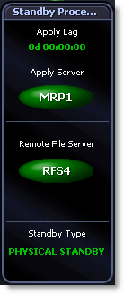 An Example Scenario: The flow from Remote File Server to Standby Logs to Apply Server to Buffer Cache to Data Files shows no reason for alarm so you would expect the Apply Lag to be low, but the Apply Lag is increasing in contradiction to this. The Apply Lag data is misleading. Disable the Apply Lag Alarm and use the Outstanding Logs to Apply Alarm to check for bottlenecks.