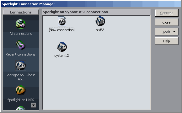 2. Select Spotlight® on SAP ASE in the Connections pane.