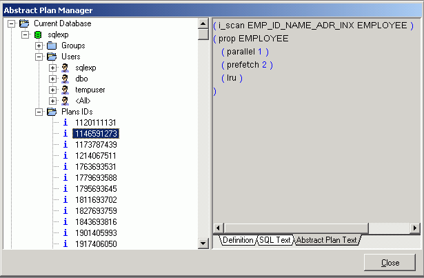 The left pane is a tree structure for the managing of the elements of the abstract plan: Groups, Users, and Plan IDs.