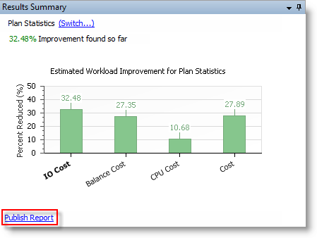 On the Results page, in the Results Summary pane, click Publish Report. SQL Optimizer generates the report and opens the report page.