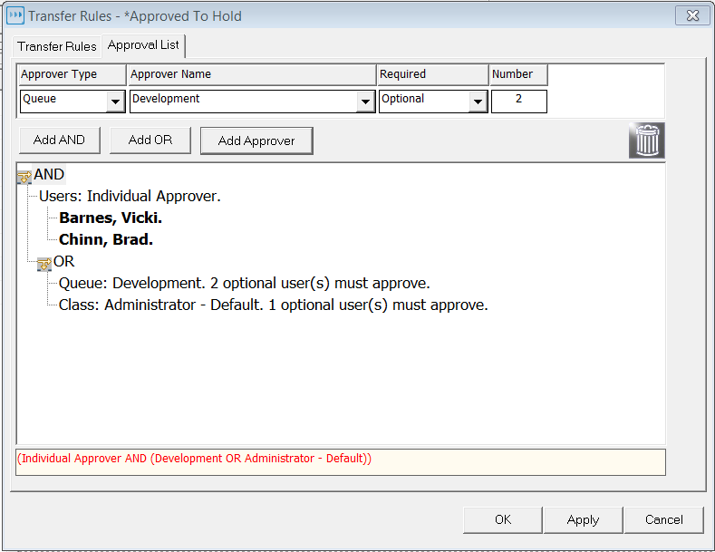 Click OR if the approval of one of two or more approver groups are required |