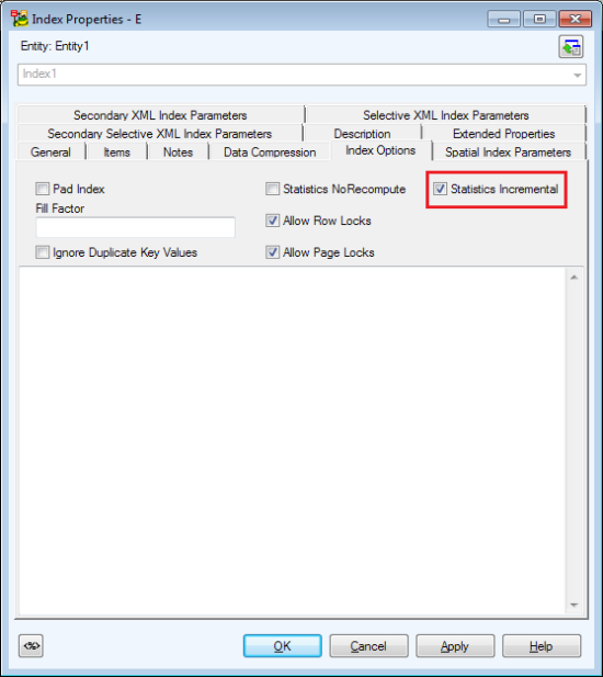 • New Index types available in Index | General | Type of Index - Columnstore, Selective XML, Secondary Selective XML