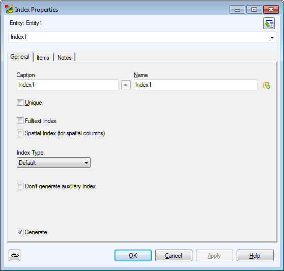 Comments box on tab General - The text written in the Comments box on entities and attributes is generated in final DDL script.