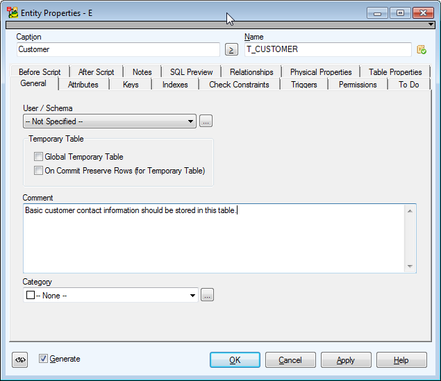 Select it to generate the entity in final SQL (DDL) script. (It is selected by default.)