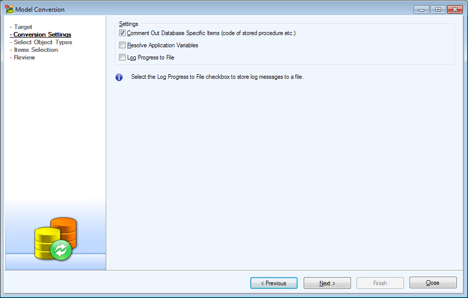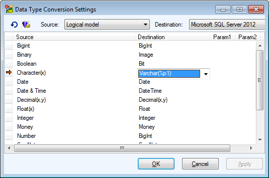 • Before you start the conversion, you can set up the conversion rules in the Data Type Conversion Settings dialog. This option is available only if Expert Mode is enabled.