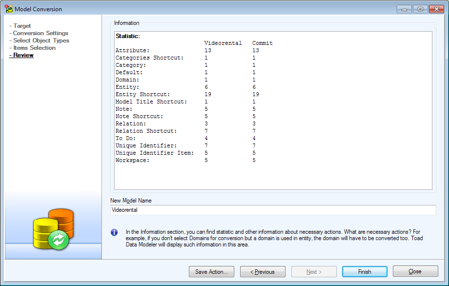 The main disadvantage of logical modeling is that direct synchronization with existing database is not possible. Only physical models of specific database platforms and versions may be synchronized with an existing database. Therefore, if you want to synchronize your logical model, you need to convert it to the physical model first.