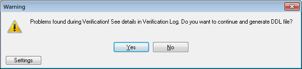 Note: Models are automatically verified before generating DDL script. To learn more, see Model Verification.