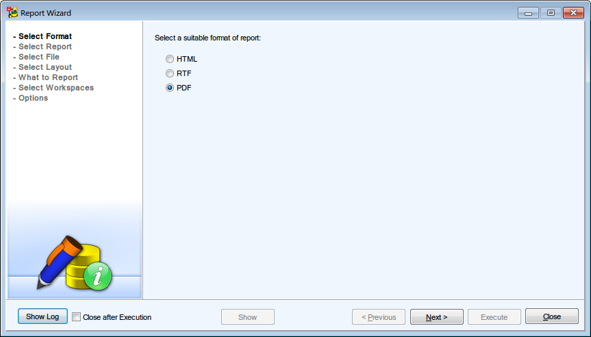- The final section contains several options allowing you to further customize the generated report. Click on Execute to generate the report. Once the report is generated, you can view it by clicking on Show.