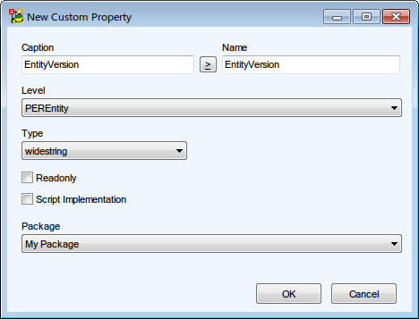 Determines on which level the property should be created. For example, if you create a new custom property for an entity (in Oracle 10g model), you can choose from the following options: