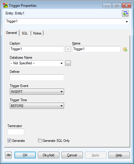 Comments box on tab General - The text written in the Comments box on entities and attributes is generated in final DDL script.