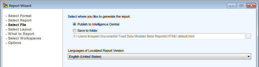 • Reports can be published to TIC by checking the appropriate option in the Select File section of Report Wizard. See Publishing Models/Reports for more information.