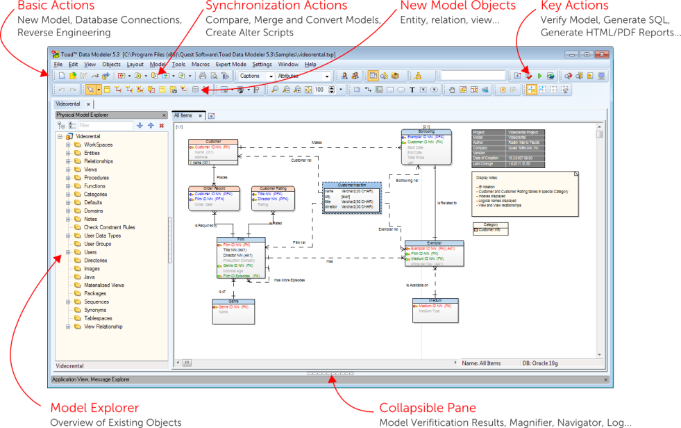 Application Variables Export/Import DDL Script Generation Graphics Model Actions Print Create New Project Reports Reverse Engineering Scripting and Customization About Templates Tips and Tricks Toad for Oracle Integration Toad Intelligence Central (TIC) Integration Tools Version Control