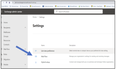 3. In Exchange Admin Center | Settings, make sure the Mail Flow has the settings below at the organization level.