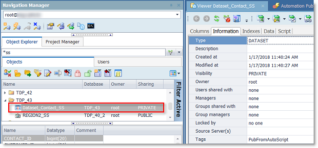 18. To confirm your dataset was published, review the Automation script log, or use the Object Explorer to view objects in the Toad Intelligence Central server to which you published the dataset.