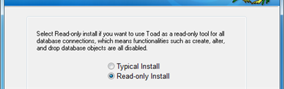 1. Reinstall Toad and select Read-only Install on the Install Type page.