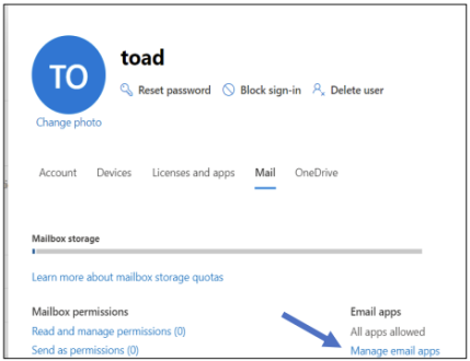 2. In the O365 Admin Center, let’s go to create the user (toad in this case) that will use the application.