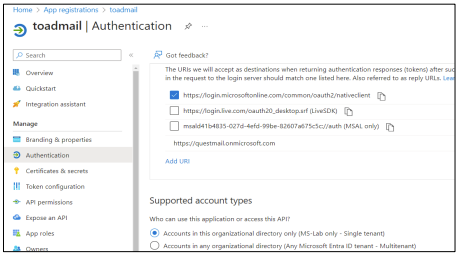 4. At this point, Microsoft Documentation states that the application registered has to interface and use the SMTP server.