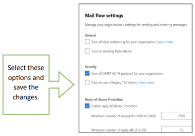 3. In Exchange Admin Center | Settings, make sure the Mail Flow has the settings below at the organization level.