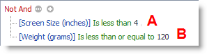 7. The Boolean operation used to join the two conditions is located above the two statements. And is used by default. To use a different Boolean operation, click And and select a different operator (Or, Not And, Not Or).