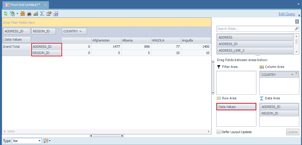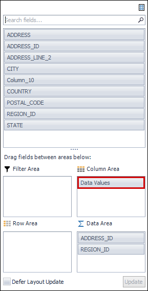 Users can choose where to place the Data Values item, to Column or Row area, by simply dragging the item from one area to another: