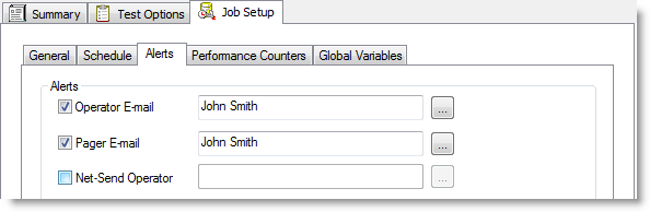 Use the Job Setup tab of the New Job wizard or Edit Job wizard to schedule a job, set up email notifications (alerts), add performance counters, and manage global variables.