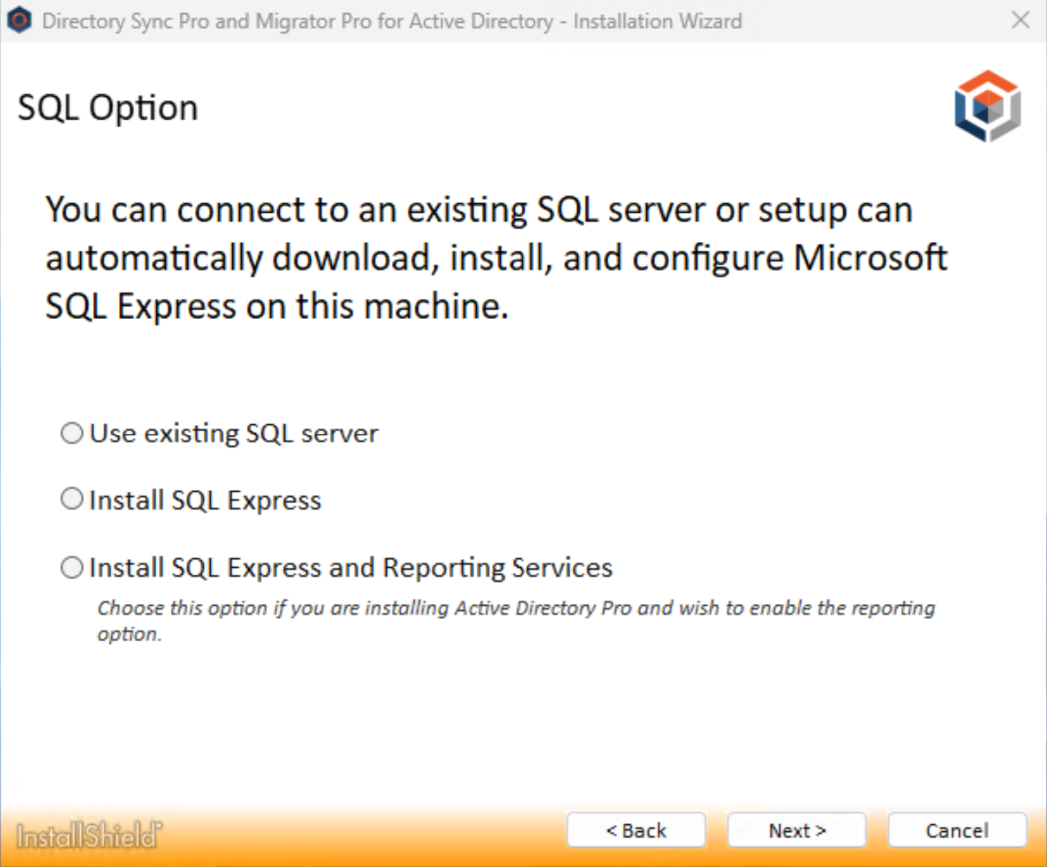 The Directory Sync Pro for Active Directory and Migrator Pro for Active Directory installer can be used to install both Directory Sync Pro for Active Directory and Migrator Pro for Active Directory at the same time or individually. Migrator Pro for Active Directory should only be installed at the same time as Directory Sync Pro for Active Directory or if it has previously been installed on the same server.