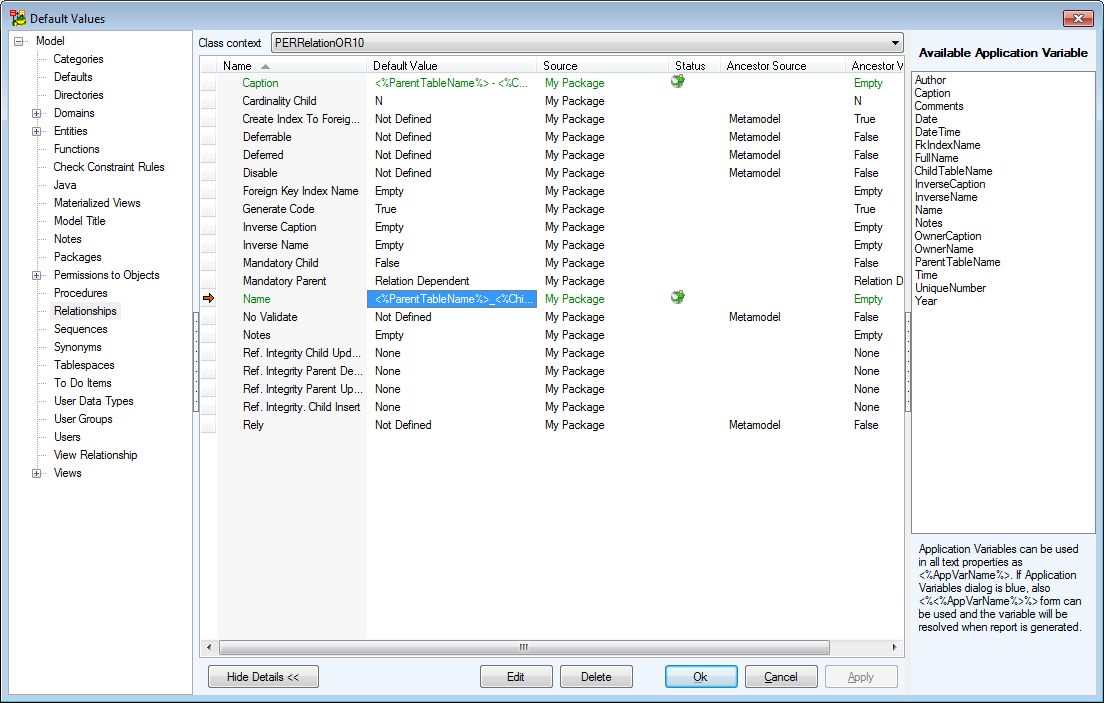 Example: PEREntityOR10 (entities in Oracle 10g models only), PEREntityOR (entities in all Oracle models), PEREntity (entities in physical model of any database.) |