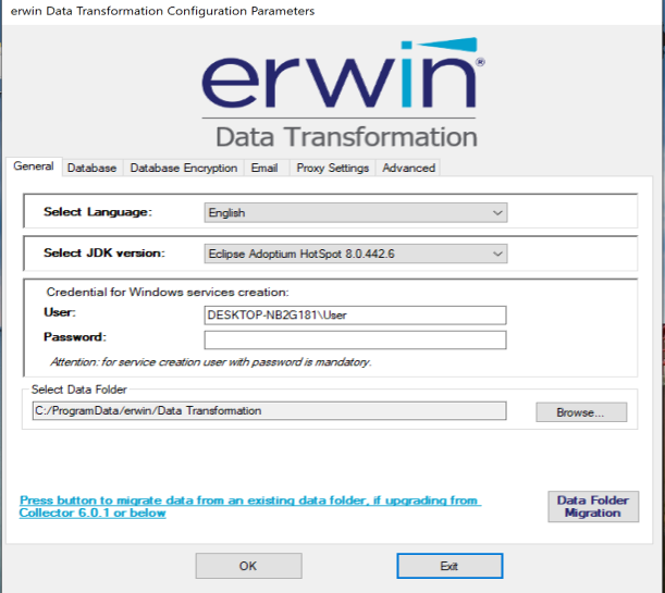 If you wish to use an H2 DB on a remote server please refer to APPENDIX A - Installing H2 DB on a remote server before installing erwin DT.