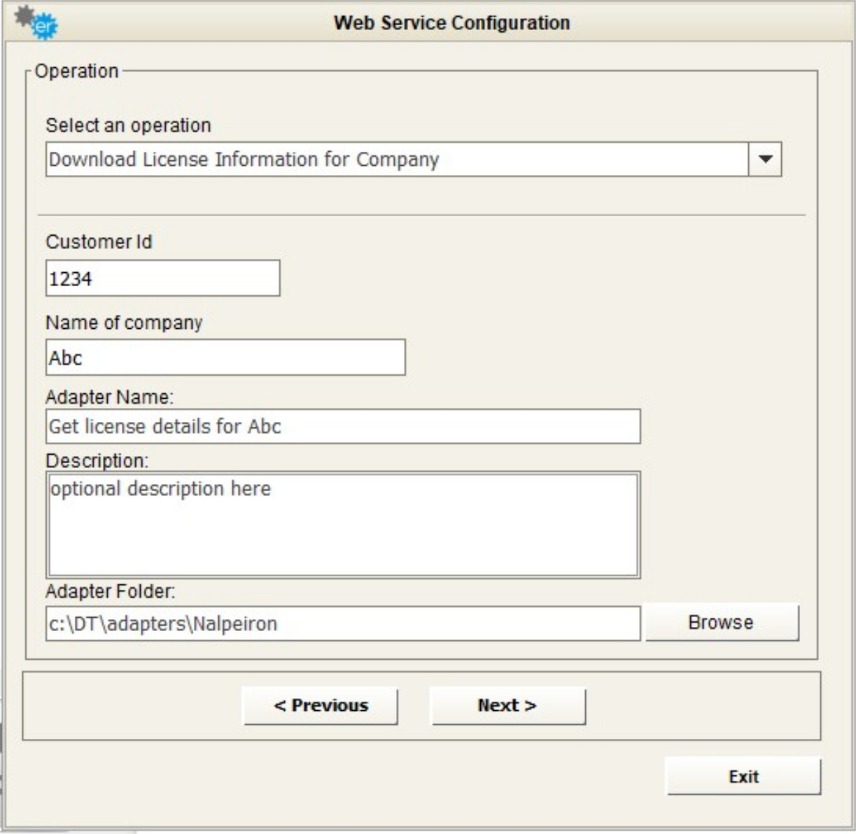 Enter a name and folder for the adapter. A description can also optionally be entered for the adapter.