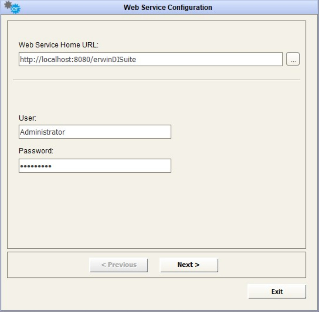 To use the adapter for erwin DISuite Mapping Manager to download Mappings, provide the url of erwin DISuite and enter the relevant credentials