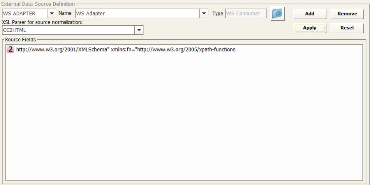 Select XSL Parser for source normalization from the list. This parser can be chosen in a list containing all “non CC compliant” custom transformations previously defined in “XSLT Library”; in particular, any XSLT parser developed to manage outside XML data has to provide a CSV structure, with “semicolon” as separator, to be effective in this step.