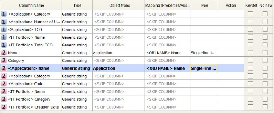 Typical use case: A model contains a technical chain from server with number of CPU, associated to IT services, associated with application, aggregated in platforms: exporting the two intersection object types, and using the “Sum Values in Rows” for association between servers (with CPU) and IT Services, collecting the CPU for IT Service in the first dataset (association between platform and application), using the IT service as key in “Match keys and pick values” transformation, this output can be obtained: