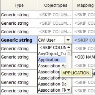 1. In case of “All Objects” type of associations, differently from other type of associations, the target object type has to be specified, allowing a proper execution of data import. To do this, after mapping a source column to an association to all object, it is then mandatory to map one more specific column: