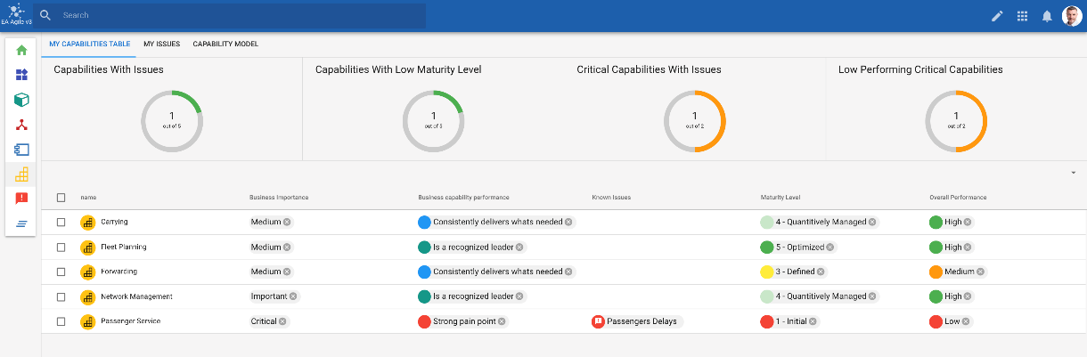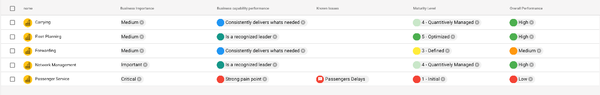 Tree Views are used to visualize data hierarchically with each branch showing an objects related items. The example below shows sub-capabilities as a branch of a parent capability.