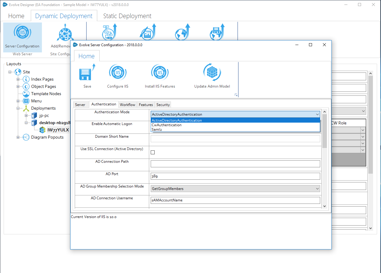3. Now in Evolve Designer under server Configuration/Authentication tab