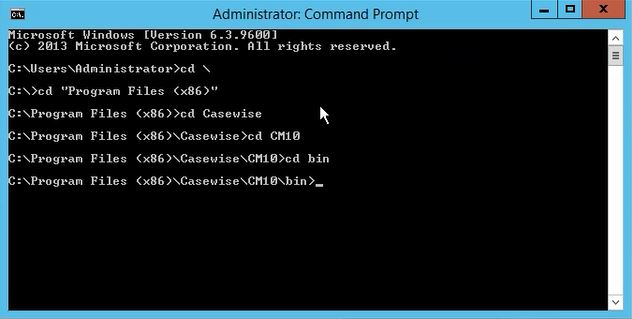 1. Run Command Prompt as an administrator and navigate to the 'bin' directory where CW Suite is installed.