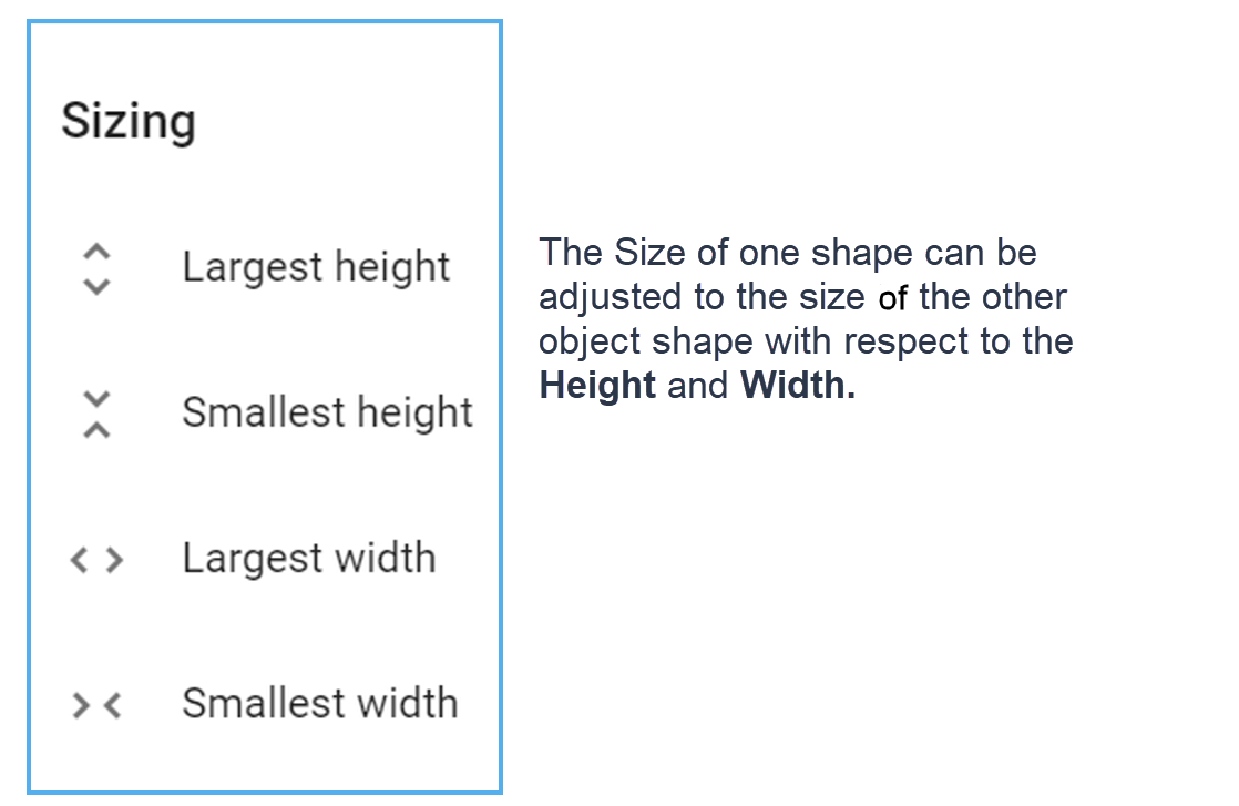 Object shapes can be aligned to the Left, Right, and Center horizontally, and also Top, Bottom, and Center vertically, which can also be evenly Distributed Horizontally or Vertically.