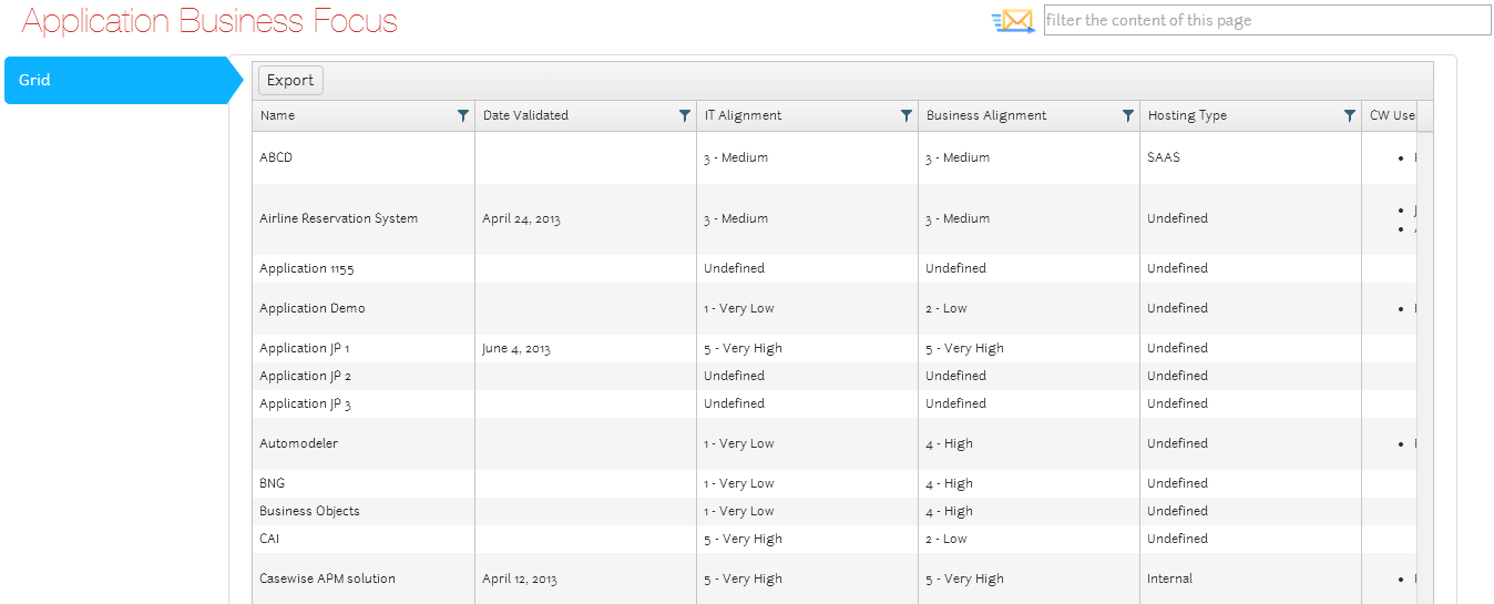 Users can sort the list by clicking column headings, and they can optionally edit objects directly in the Table itself.